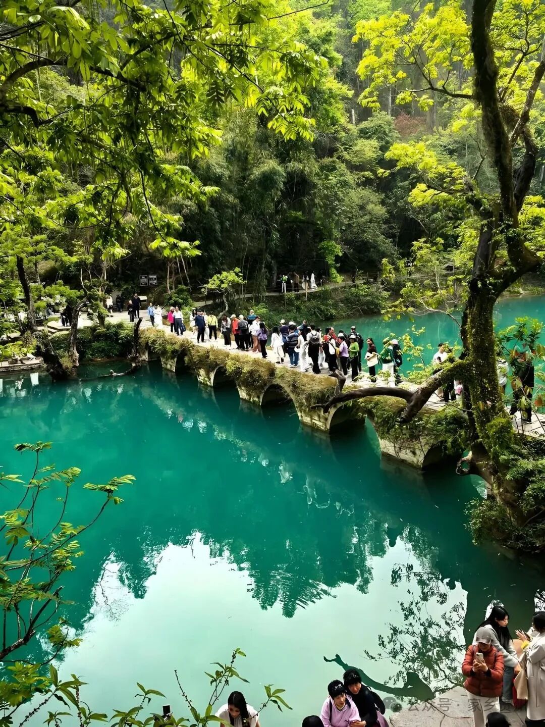 清晨的梵净山巅,云雾如海浪般翻涌,红云金顶在晨光中若隐若现,游客举起手机记录下这瞬间的壮美,他们的身影成为这自然画卷中灵动的点缀。清晨的荔波小七孔,碧绿的河水从古朴的七孔石桥下缓缓流过,桥面青苔斑驳,