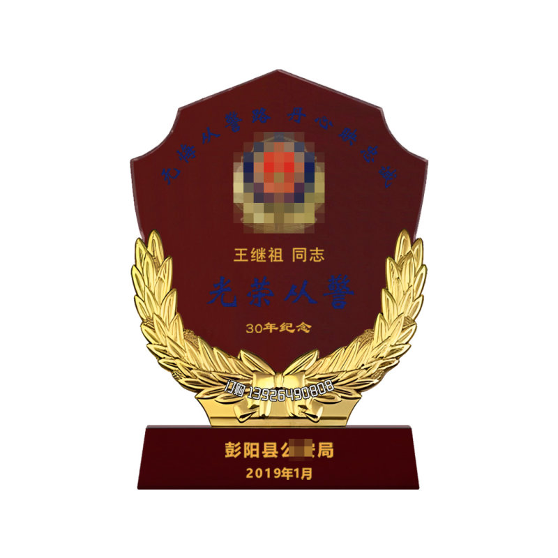 创意木奖牌警盒批发新警入警从警周年光荣退休荣誉表彰纪
